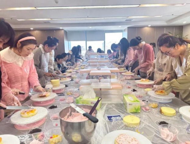 活動邀請了專業(yè)的烘焙老師,為大家講解高檔奶油蛋糕的制作方法,從工具選用、操作技法和造型設計等方面,向大家一一進行教學示范。